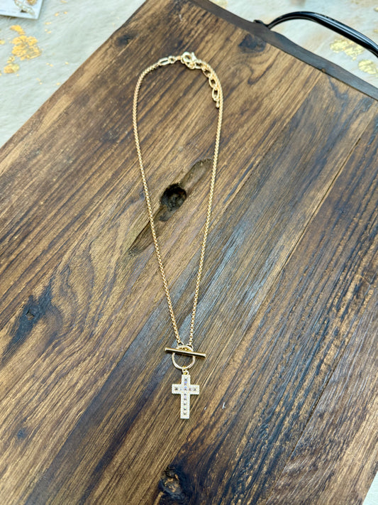 Gold Rope Chain with Cross Charm & Toggle