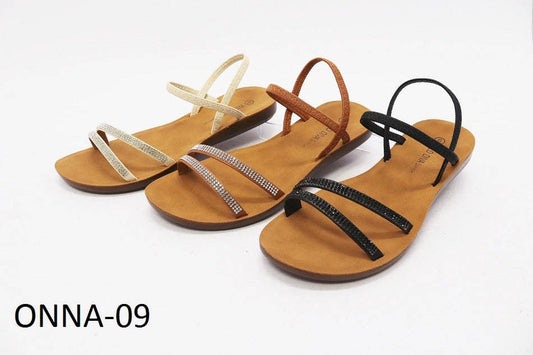 Wild Diva Rhinestone Elastic Ankle Strap Flat Sandal