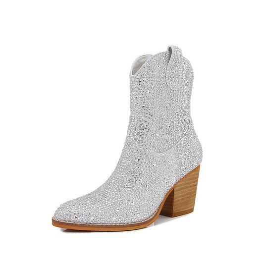 Rhinestone Block Heel Western Booties