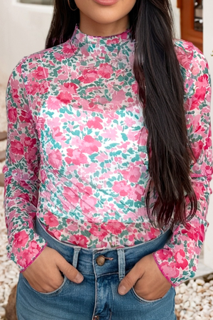 item LDC Floral Sheath Mock Neck Blouse Material 95%Polyester+5%Elastane Style Casual Pattern Floral Occasion Daily Season S/S 🌸 Allover floral print adds feminine charm. 🌬️ Stretchy mesh fabric feels comfy and flexible. 👚 Slim fit with mock neck flatters your shape. 🕊️ Lightweight long sleeves for easy layering.