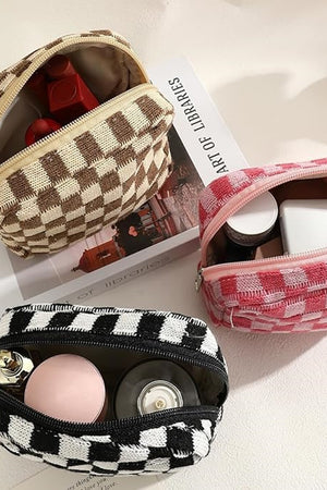 Keep your essentials stylishly organized on the go! This mini checkered cosmetic case is perfect for makeup, skincare, or little everyday essentials. Available in blue and mocha, it’s compact, cute, and travel-ready. 💙🤎👜